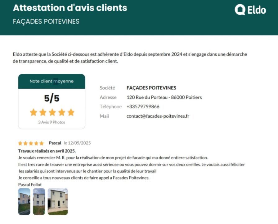 Une visite sur un chantier récemment réalisé à Saint-Benoit (86280) à permis de conforter son choix de confier sa ravalement de façade à Façades Poitevines.
